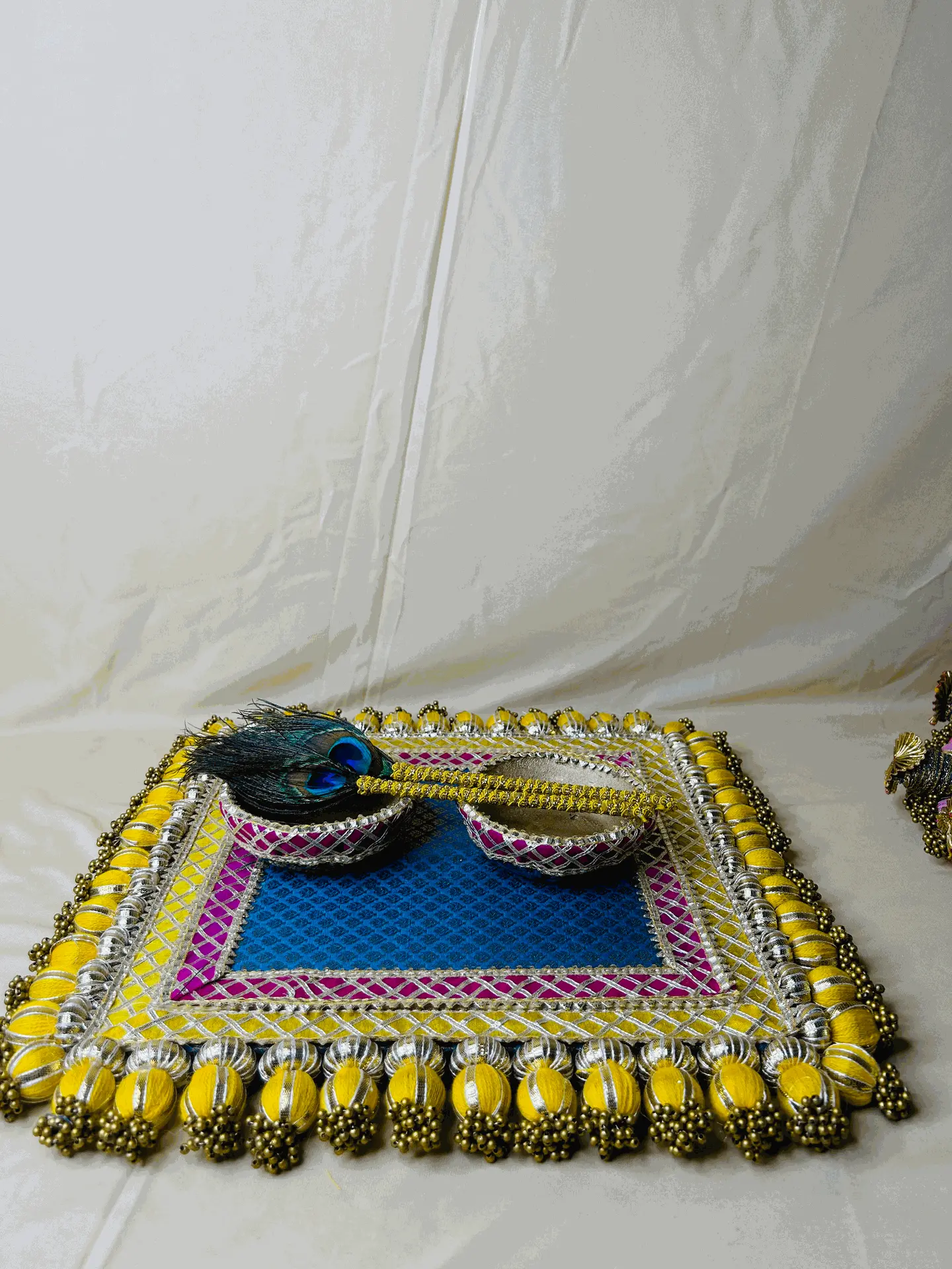 Jhula set, lights bright — "Krishna’s birth, pure delight.